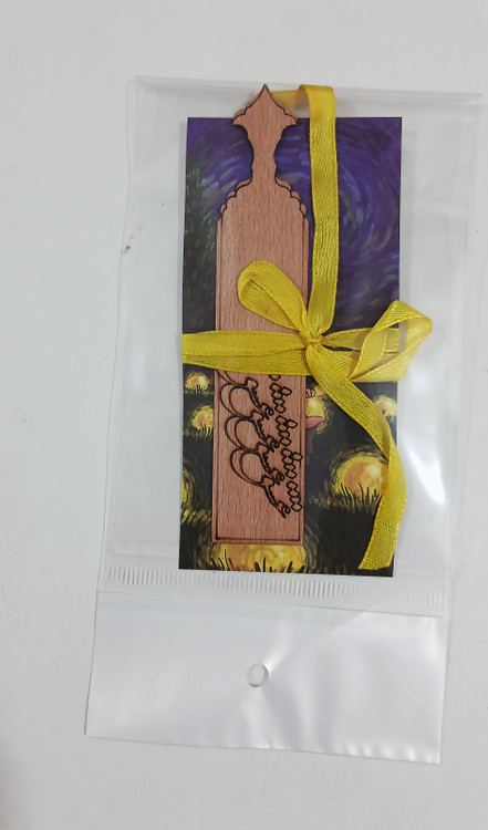 بوک مارک یا نشانک کتاب که به صورت دست ساز با لیزر روی چوب برش و طرح خورده است قطر یک میل بسیار ظریف و زیبا مناسب هدیه و استفاده برای مطالعه