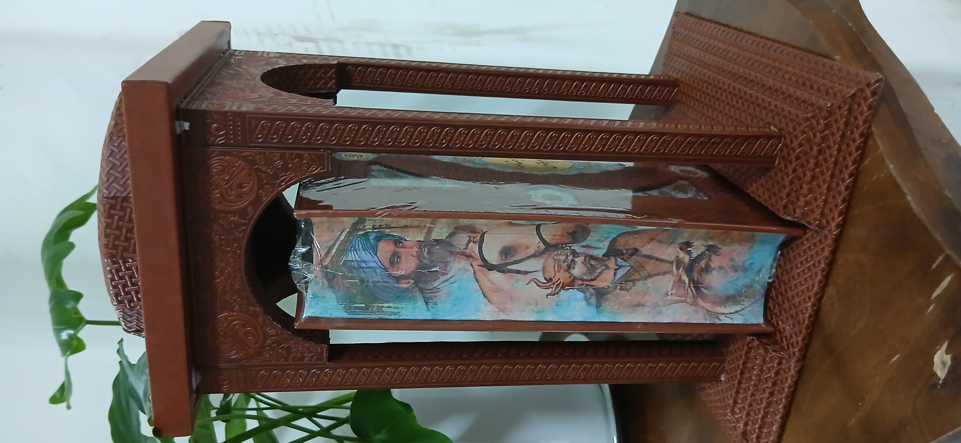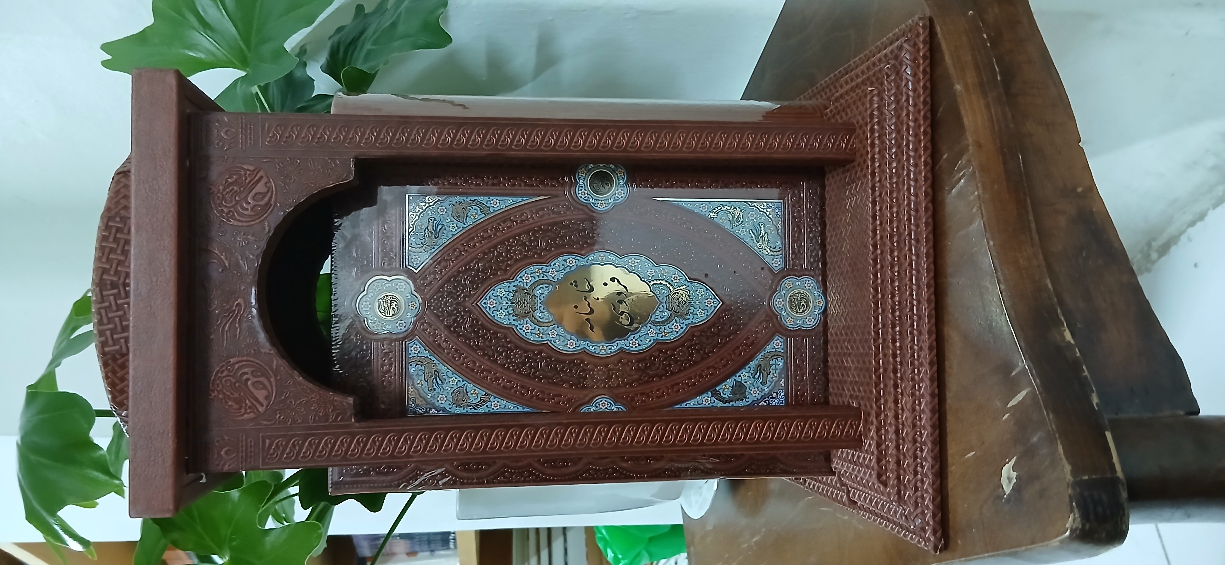 مشخصات کتاب قطع کتاب وزیری چرم گلاسه لب چاپ پلاک دار همراه تندیس مقبره